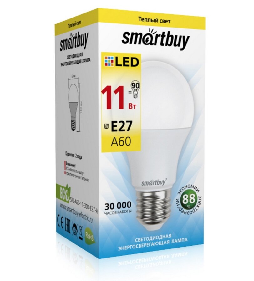 Ниже Вы можете прочитать отзывы на Лампа светодиодная Smartbuy SBL-A60-11-30K-E27-A, ознакомится с подробными характеристиками, посмотреть интересные обзоры и фотографии на Лампа светодиодная Smartbuy SBL-A60-11-30K-E27-A.