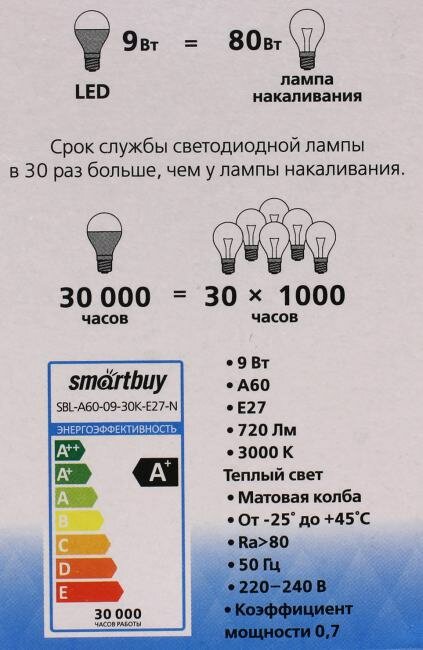 Ниже Вы можете прочитать отзывы на Лампа светодиодная Smartbuy SBL-A60-09-30K-E27-N, ознакомится с подробными характеристиками, посмотреть интересные обзоры и фотографии на Лампа светодиодная Smartbuy SBL-A60-09-30K-E27-N.