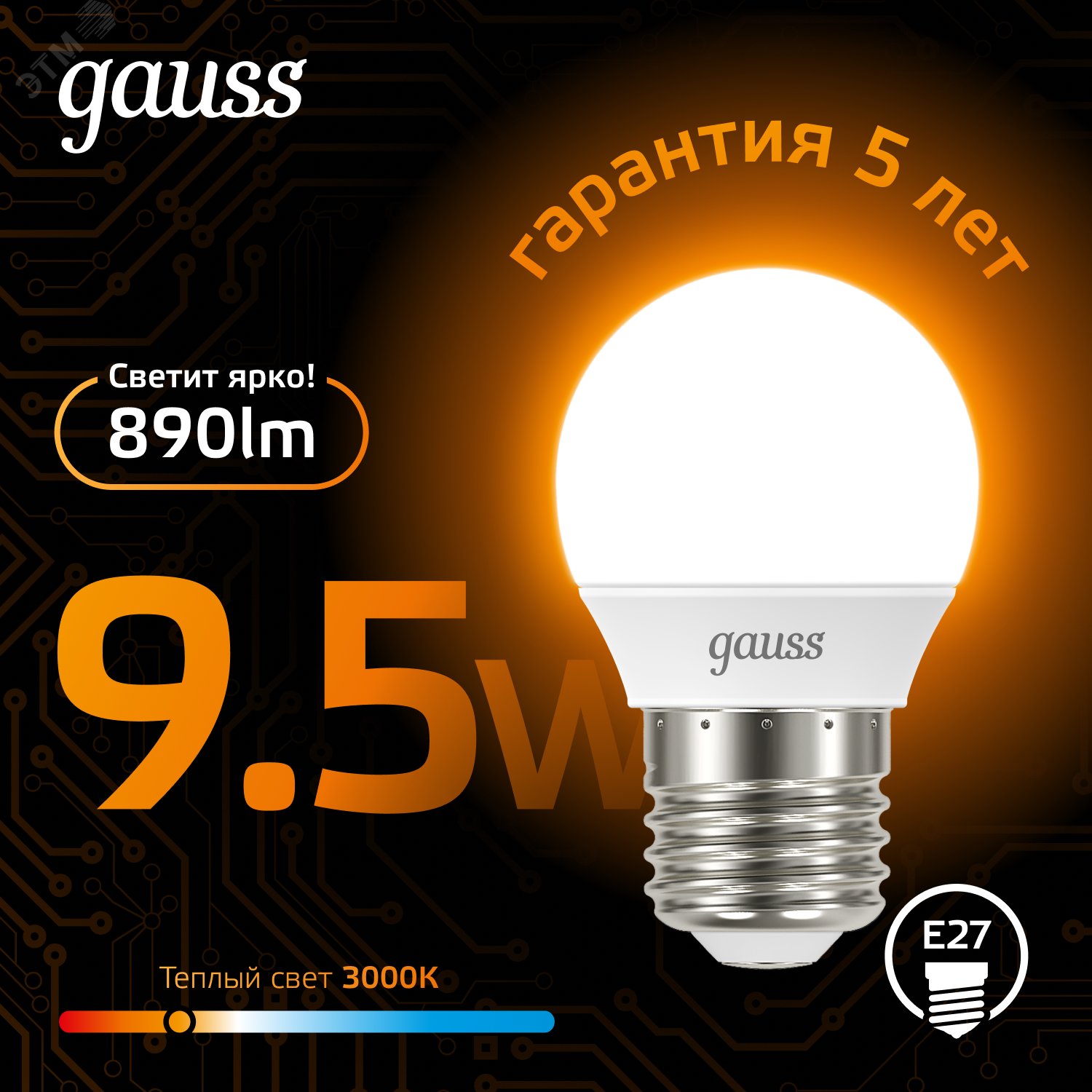 Лампа LED G 9.5Вт E27 220V 2700K "Gauss" 105102110
