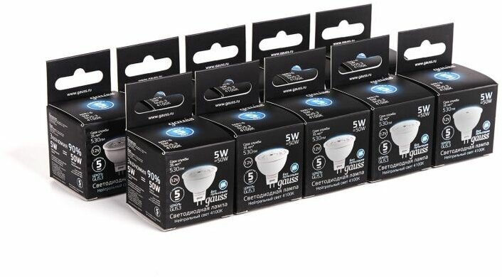 Упаковка светодиодных ламп 5 шт Gauss MR16 5W 530lm 4100K GU5.3 LED 101505205