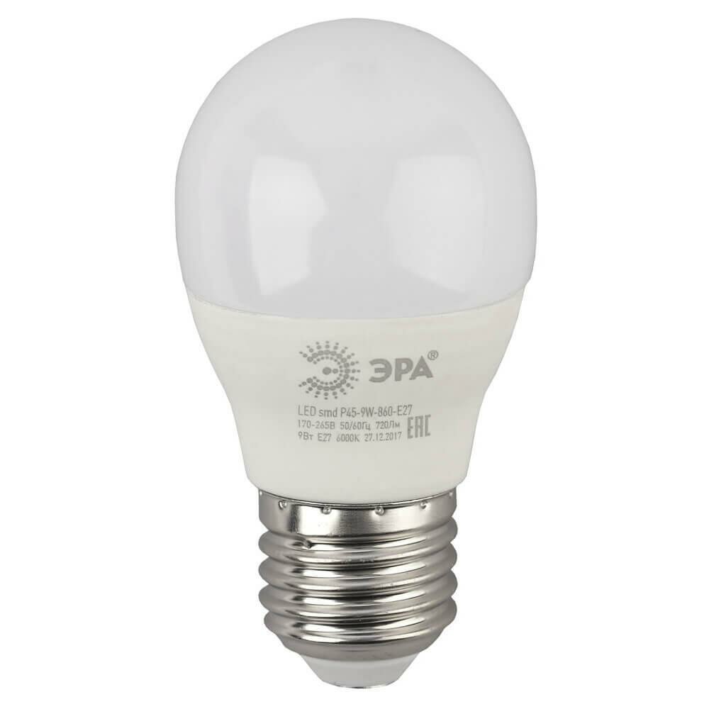 Купить ЭРА Лампа светодиодная ЭРА E27 9W 6000K матовая LED P45-9W-860-E27 Б0031412