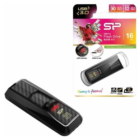 Флешка Silicon Power Blaze B50 16 ГБ, 1 шт., черный