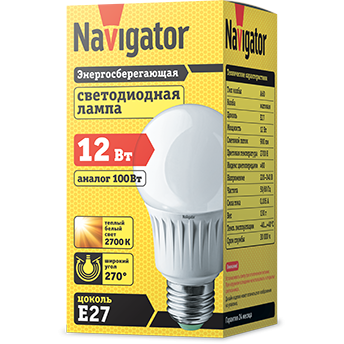 Светодиодная лампа Navigator NLL-A60-12-230-2.7K-E27 Standard