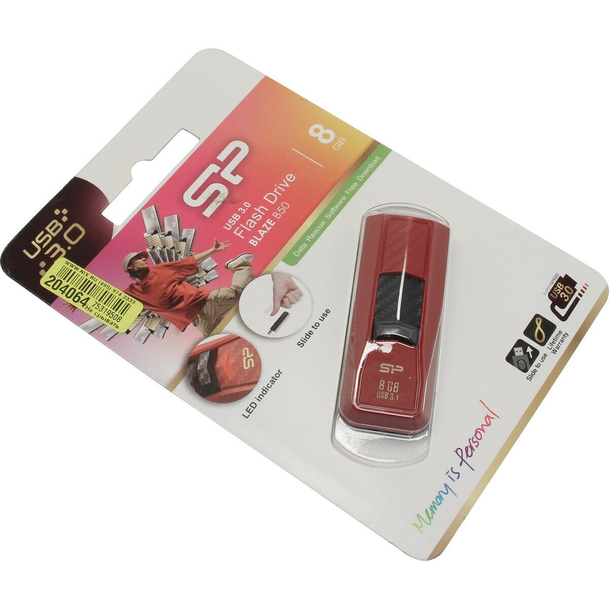 Флешка USB Silicon Power Blaze B50 8ГБ, USB3.0, красный [sp008gbuf3b50v1r]