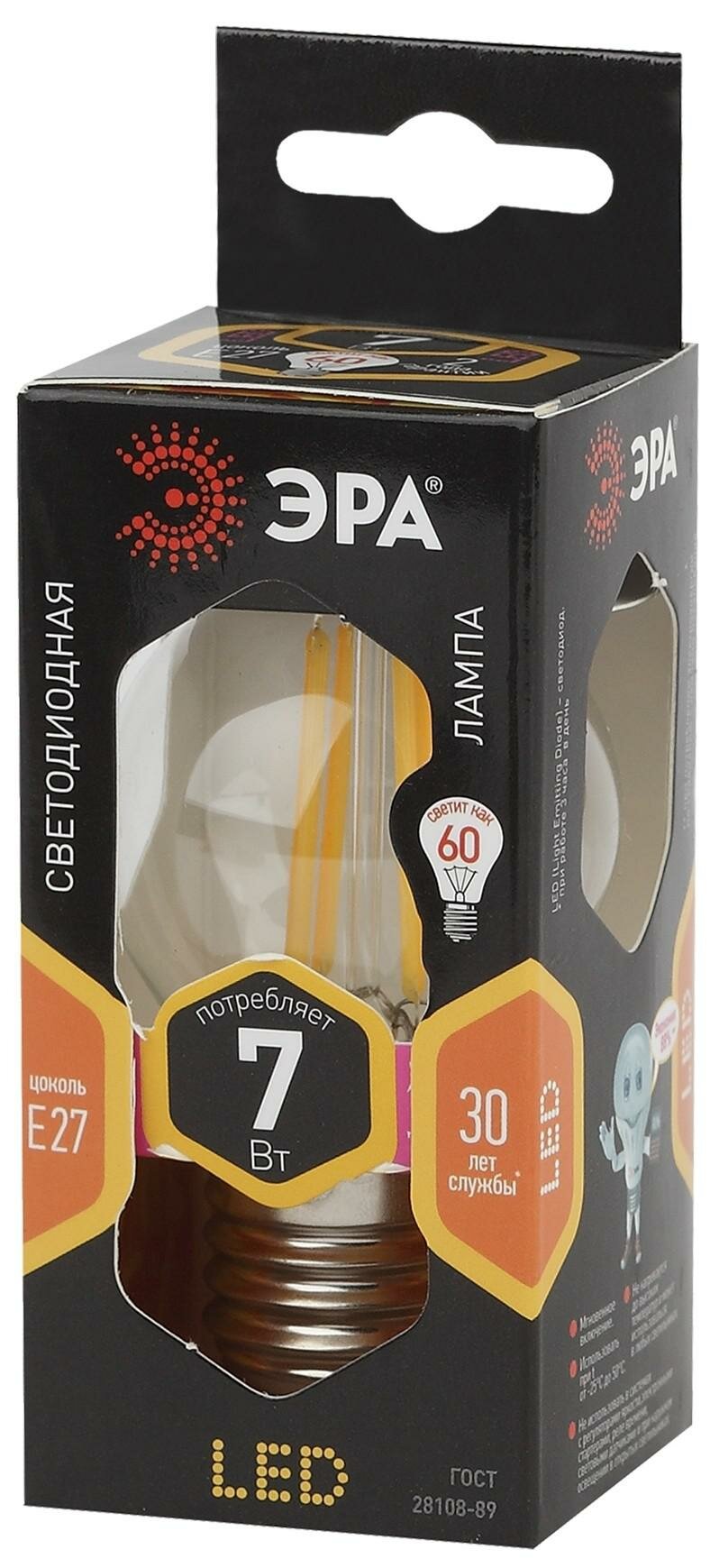 Лампочка светодиодная ЭРА F-LED P45-7W-827-E27 Е27 7Вт филамент шар теплый белый свет арт. Б0027948 (1 шт.)
