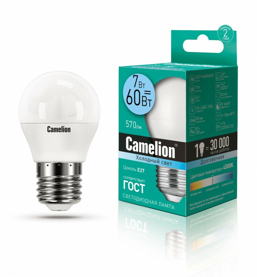 Эл.лампа светодиодная шар LED7-G45/845/E27 (7W=60Вт 560Lm) Camelion интересное: