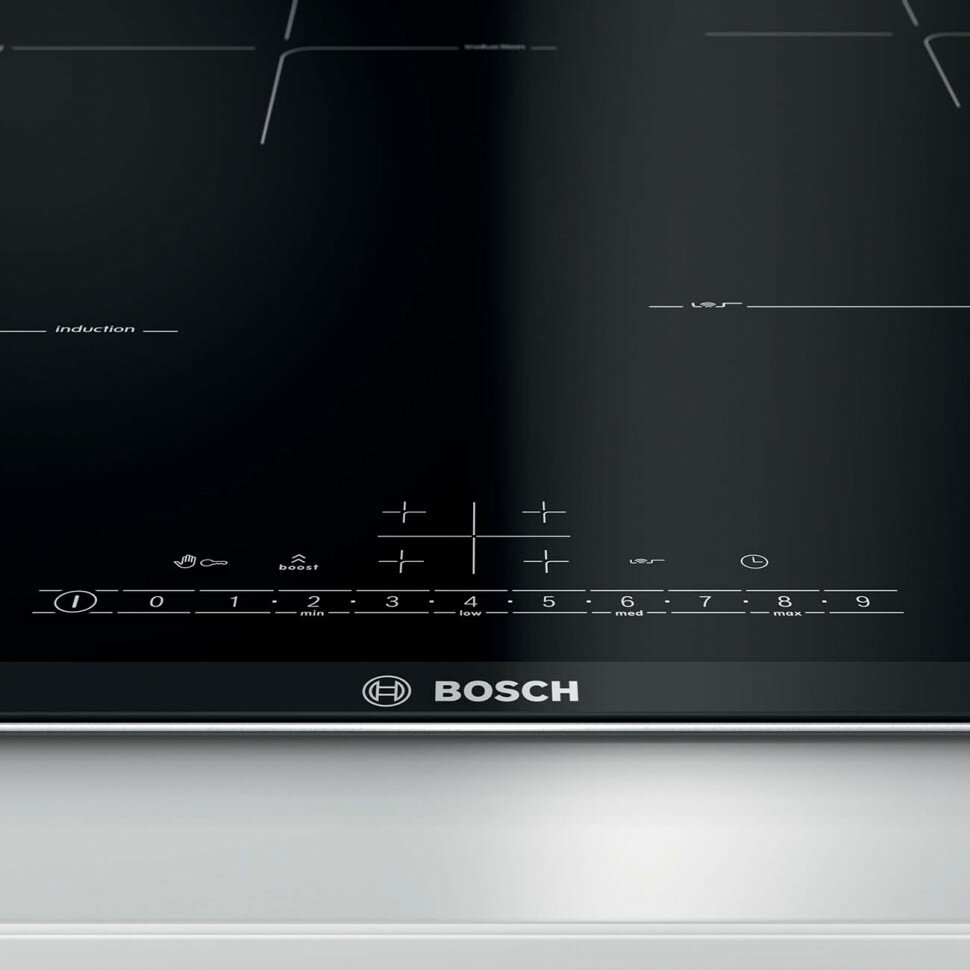 Индукционная варочная панель Bosch PIF675FC1E, с рамкой, цвет панели черный.., цвет рамки серебристый