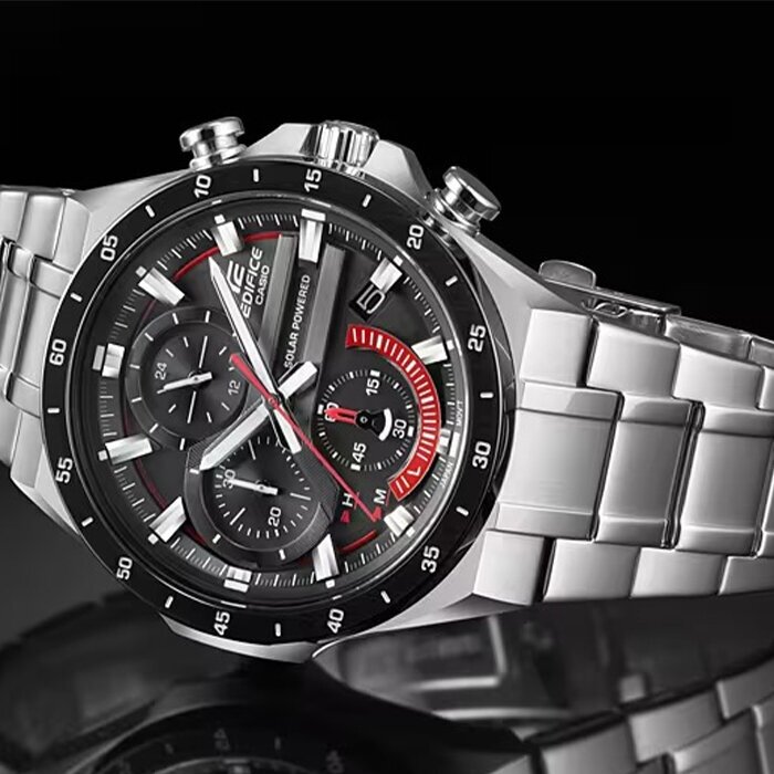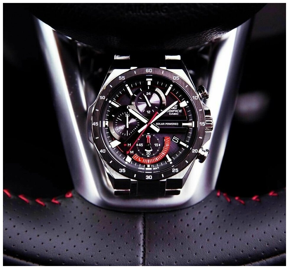 Японские кварцевые часы с солнечной подзарядкой Casio Edifice EQS-920DB-1B на стальном браслете, с водозащитой 10 бар и международной гарантией от производителя