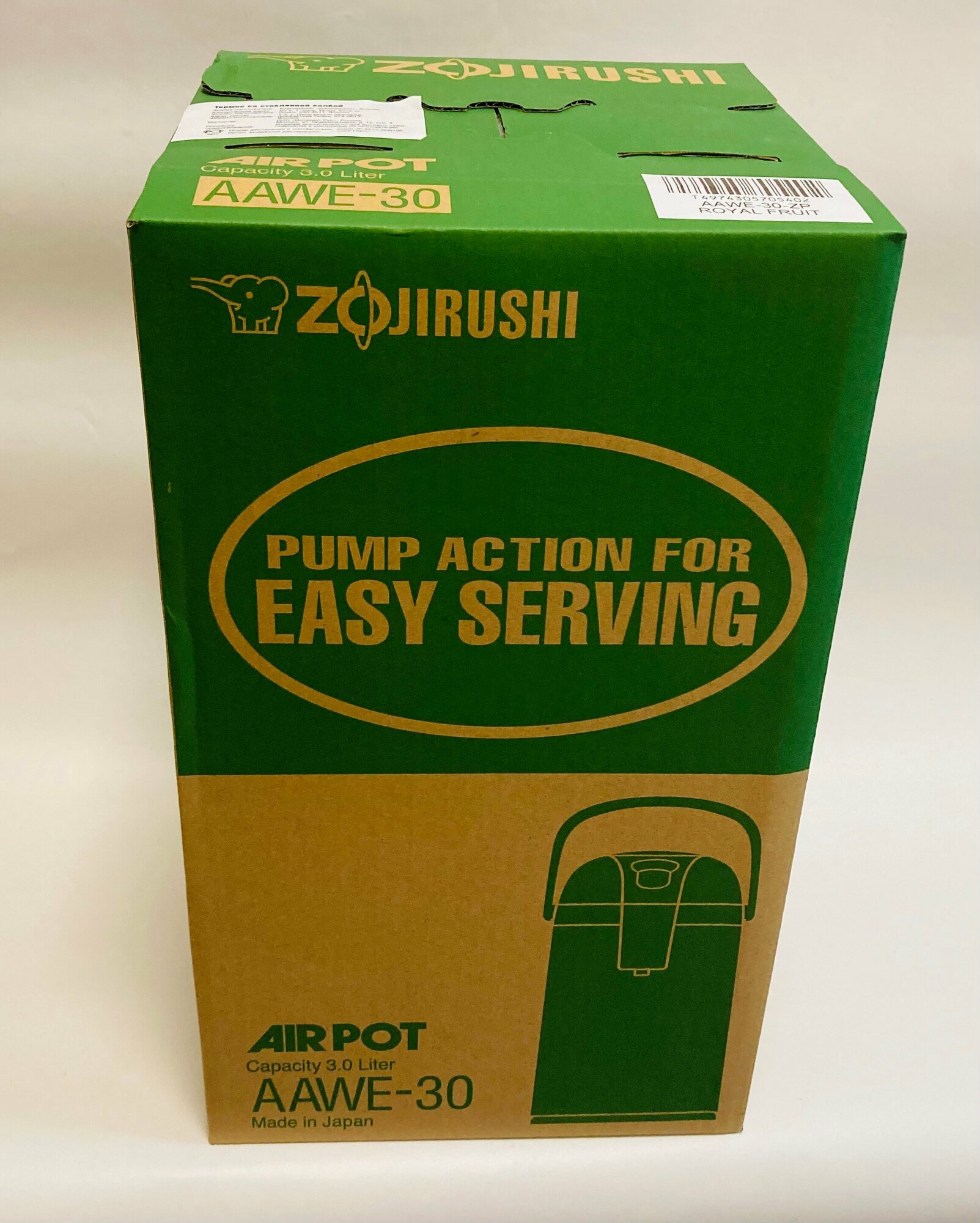 Термос с помпой ZOJIRUSHI AAWE 30 ZP, цвет королевские фрукты, объем 3 литра, сохряняет кипяток горячим 12 часов