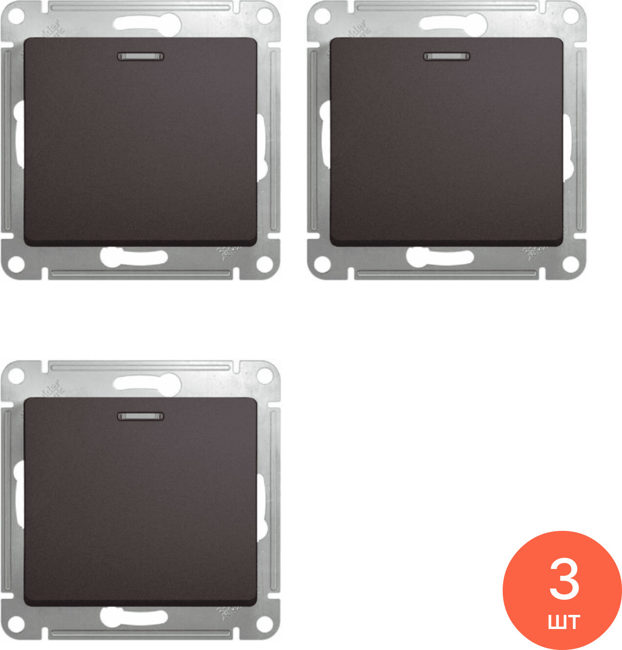 Механизм кнопочного выключателя Schneider Electric Glossa одноклавишный с индикацией графит (комплект из 3 шт)