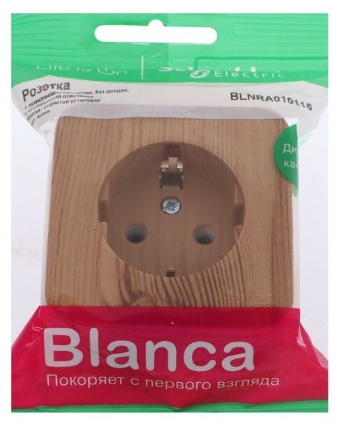 Розетка Schneider Electric Blanca с заземлением, открытый монтаж, изолирующая пластина. Ясень