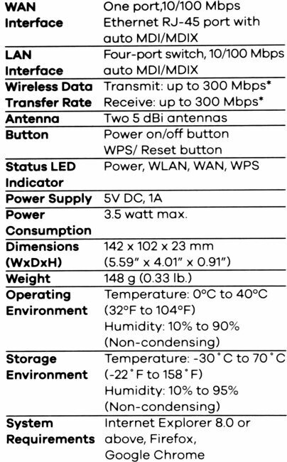 | Макс. скорость беспроводного соединения | 300 Мбит/с |