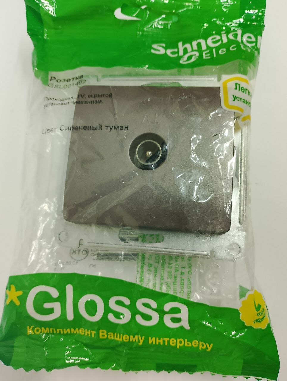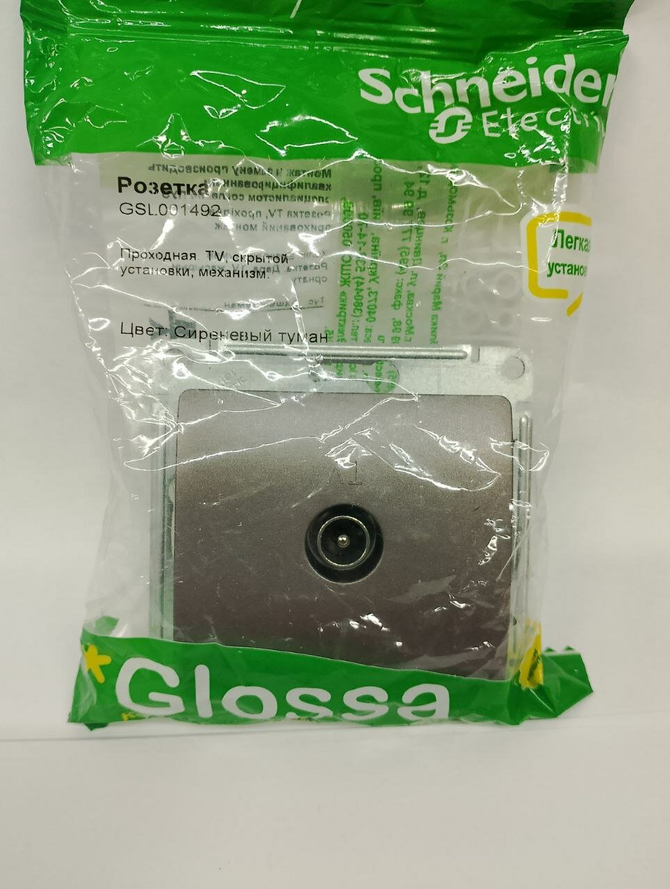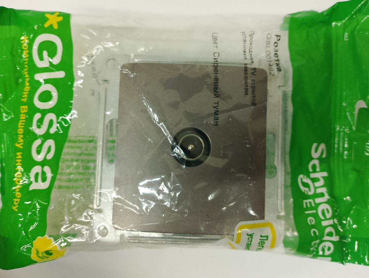 СохранитьРозетка телевизионная проходная TV 1-м СП Glossa 4дБ механизм сиренев. туман SchE GSL001492 интересное: