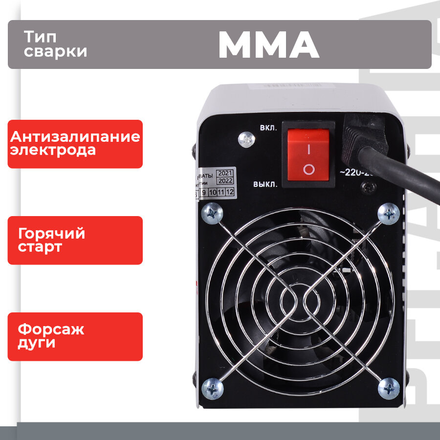 | Комплектация | аппарат, кабель с электрододержателем, кабель с клеммой заземления, руководство по эксплуатации |