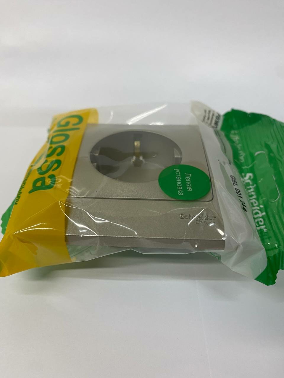 Розетка с заземлением со шторками 16А 250В в сборе GLOSSA Schneider Electric, платина GSL001244