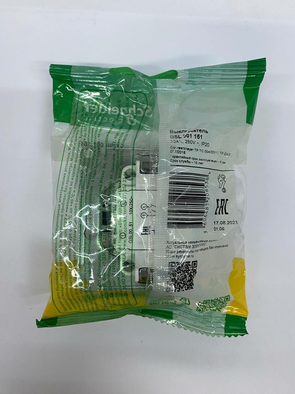 | Схема подключения выключателя | выключатель 2х1-полюсный |