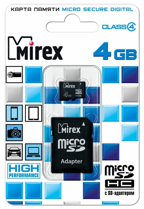 Ниже Вы можете прочитать отзывы на Карта памяти microSDHC Mirex 4 Гб класс 4 - с адаптером SD, ознакомится с подробными характеристиками, посмотреть интересные обзоры и фотографии на Карта памяти microSDHC Mirex 4 Гб класс 4 - с адаптером SD.