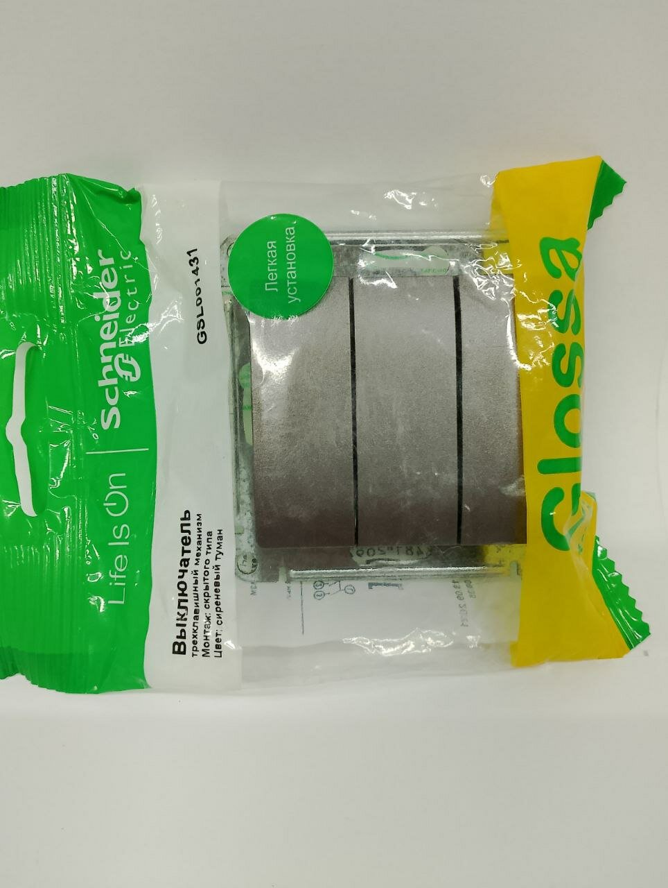 GLOSSA 3-клавишный выключатель,сх.1+1+1,10AX, механизм, сиреневый туман, SCHNEIDER ELECTRIC GSL001431 (1 шт.)