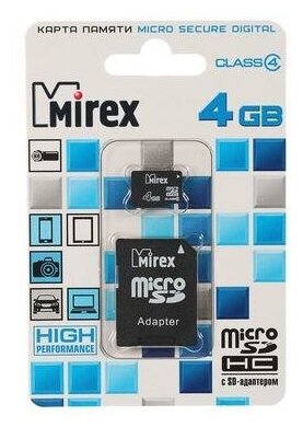 Карта памяти Mirex microSD, 4 Гб, SDHC, класс 4, с адаптером SD Mirex 4245641 .