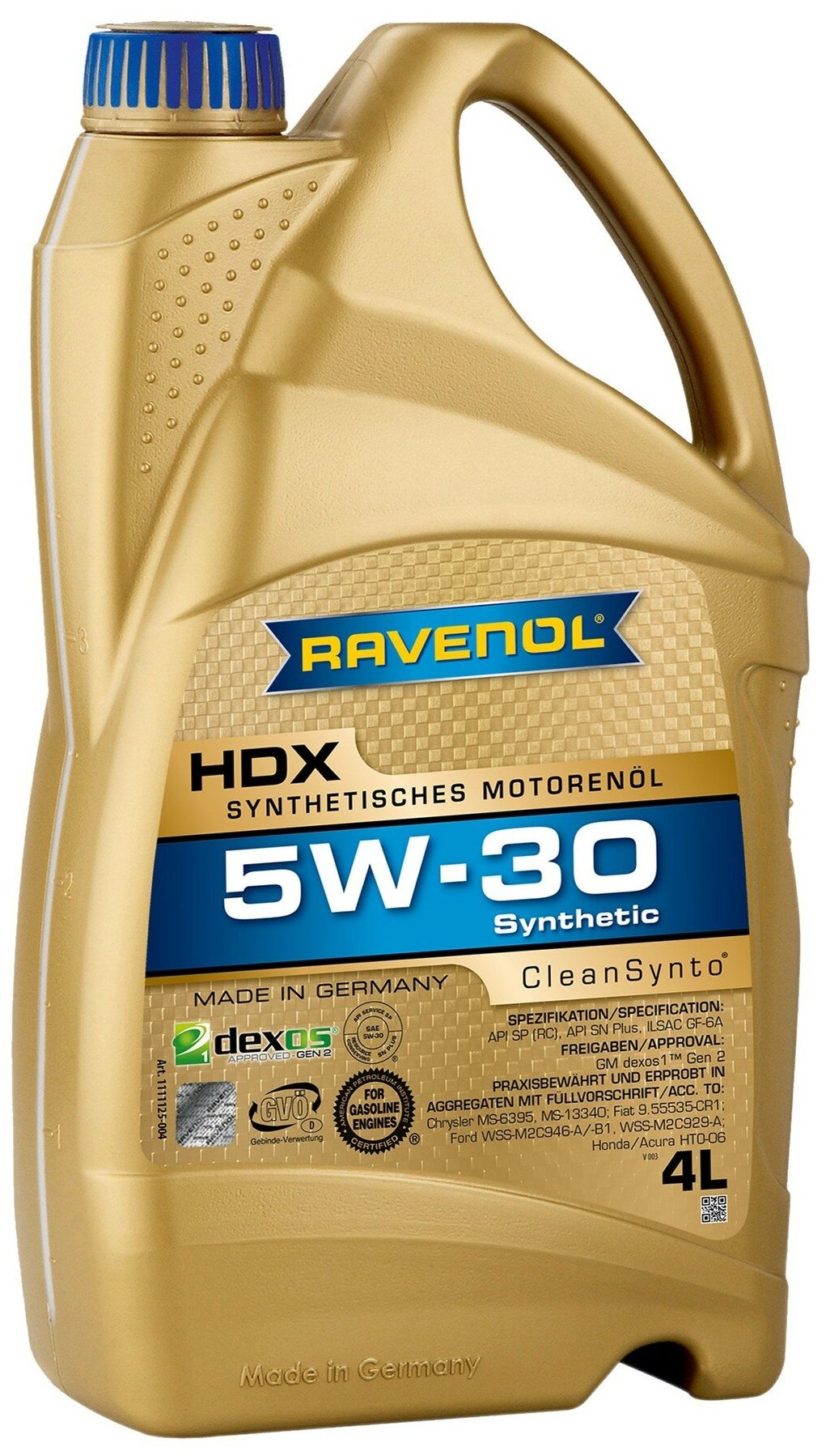 Масло моторн. Ravenol 4014835858572 /1111125-004-01-999/ hdx sae 5w30 (4 l) opel/gm dexos1™ gen 2 (лицензия d10709hk081)/api sn:rc api sn plus/ilsac gf-5 / Ravenol 4014835858572