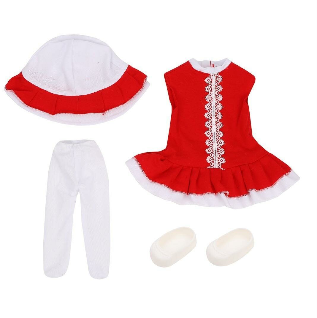 | Комплектация | кукла, куртка из ворсового трикотажа с длинными рукавами, капюшоном и застёжкой спереди на 3 пуговицы, подклад, вязаная шапка ,вязаный шарф, сапожки, платье безрукавное, шляпа, туфли |