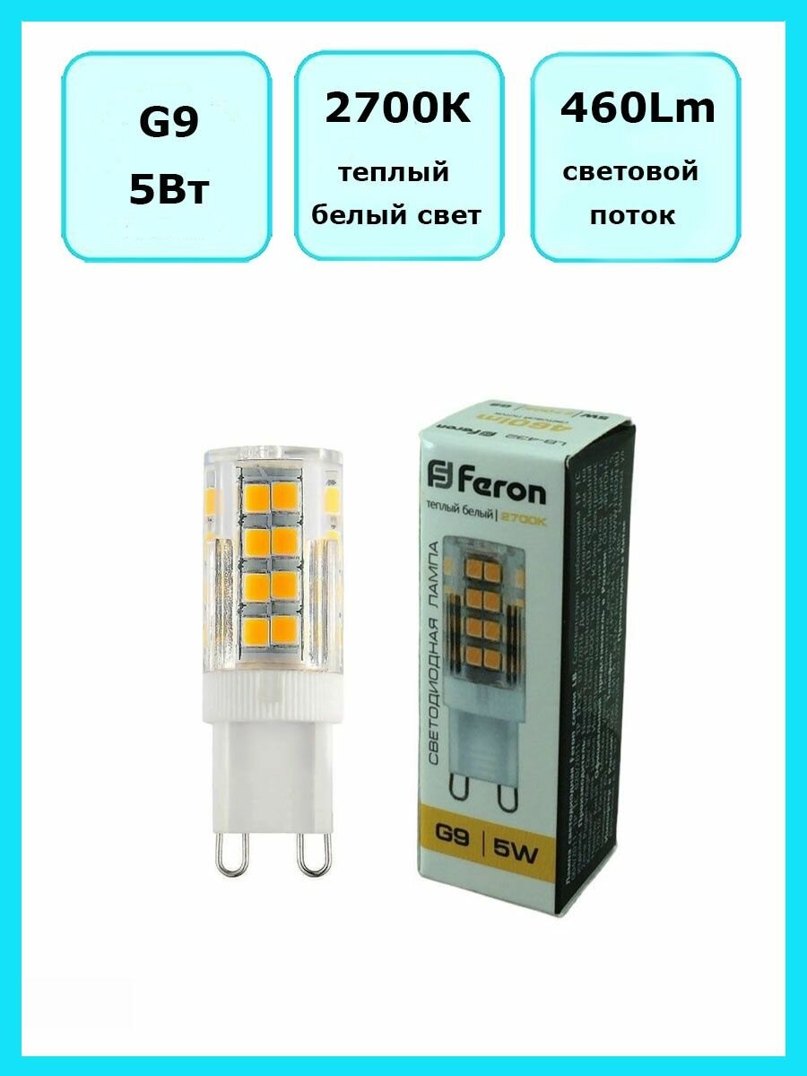 Лампа светодиодная LB-432 G9 5W 2700K, FERON 25769 (1 шт.)