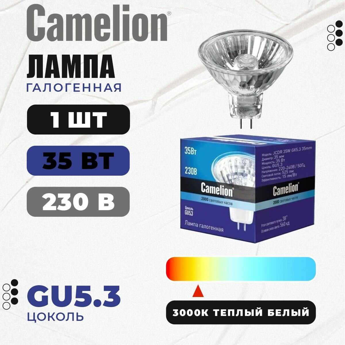 Лампа галогенная Camelion 7092, GU5.3, JCDR, 35Вт, 3000 К