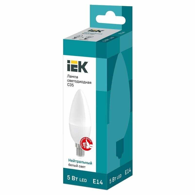 Лампа светодиодная IEK ECO C 5Вт E14 4000К 450Лм 230В LLE-C35-5-230-40-E14, 1324936