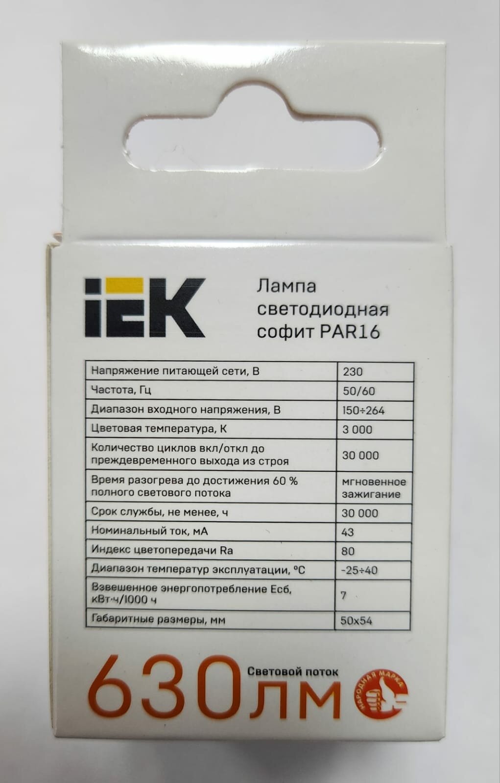 Iek LLE-PAR16-7-230-30-GU10 Лампа светодиодная ECO PAR16 софит 7Вт 230В 3000К GU10 IEK