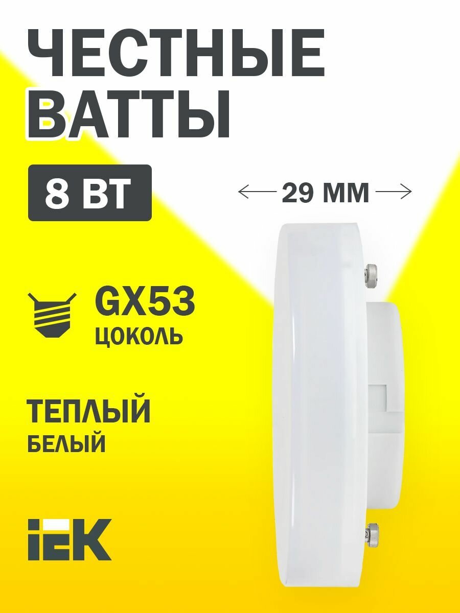 IEK GX53 8W(720lm) 3000К 2K 75х24 LLE-T80-8-230-30-GX53, Лампа светодиодная электротовар