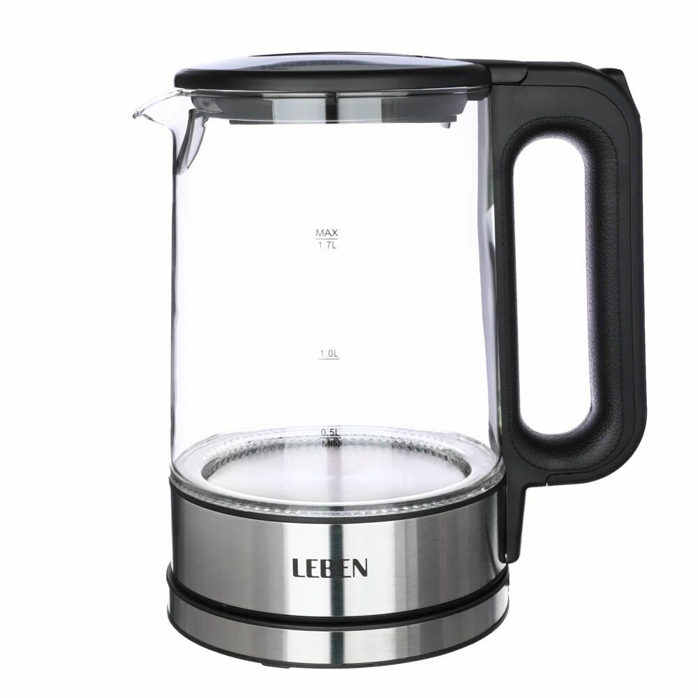 Чайник электрический стеклянный 1, 7л LEBEN, 1850Вт, скрытый нагревательный элемент