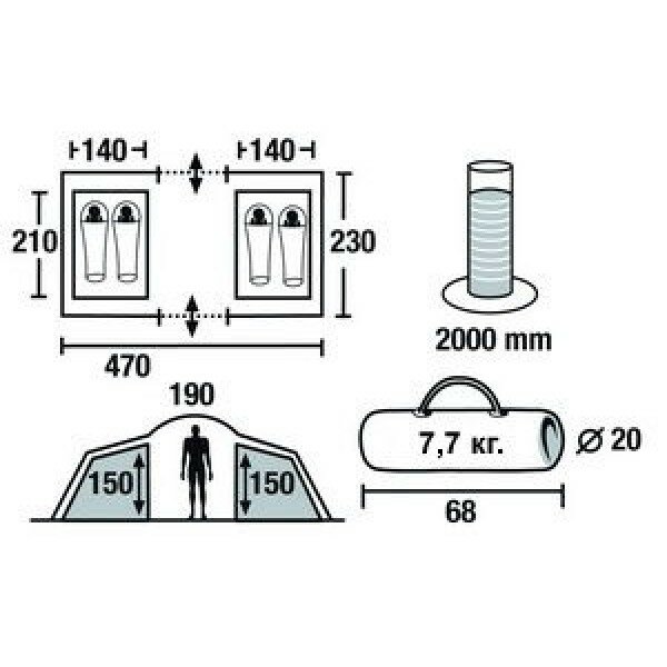 | Габариты внешней палатки(ДxШxВ) | 470x230x190 cм |