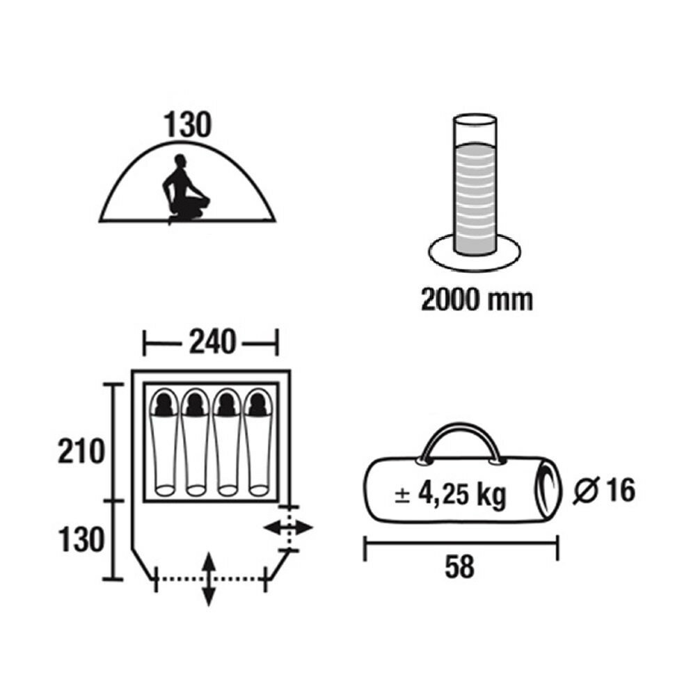 | Размеры внутренней палатки(ДxШ) | 210x240 cм |