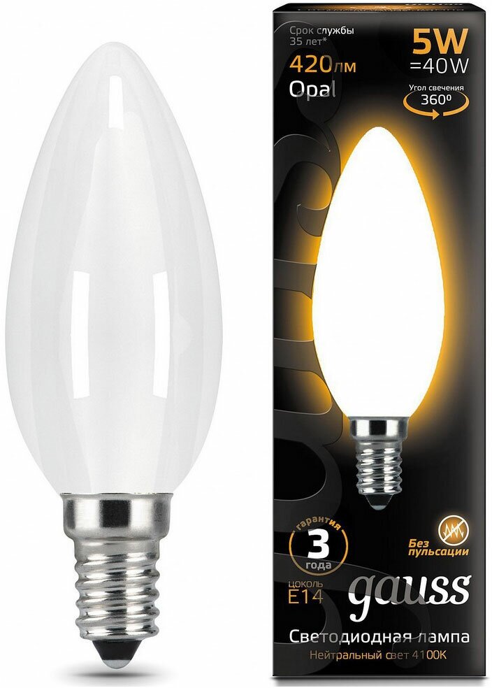 Светодиодная лампа Gauss LED Filament Candle OPAL E14 5W 2700К (упаковка 10 шт)