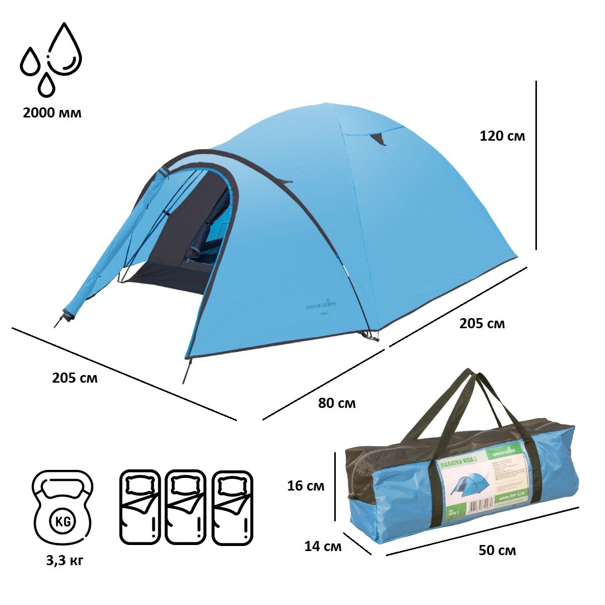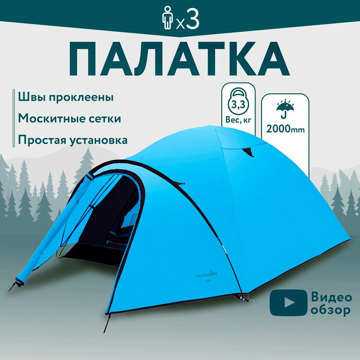 Палатка кемпинговая трёхместная Green Glade Nida 3, голубой