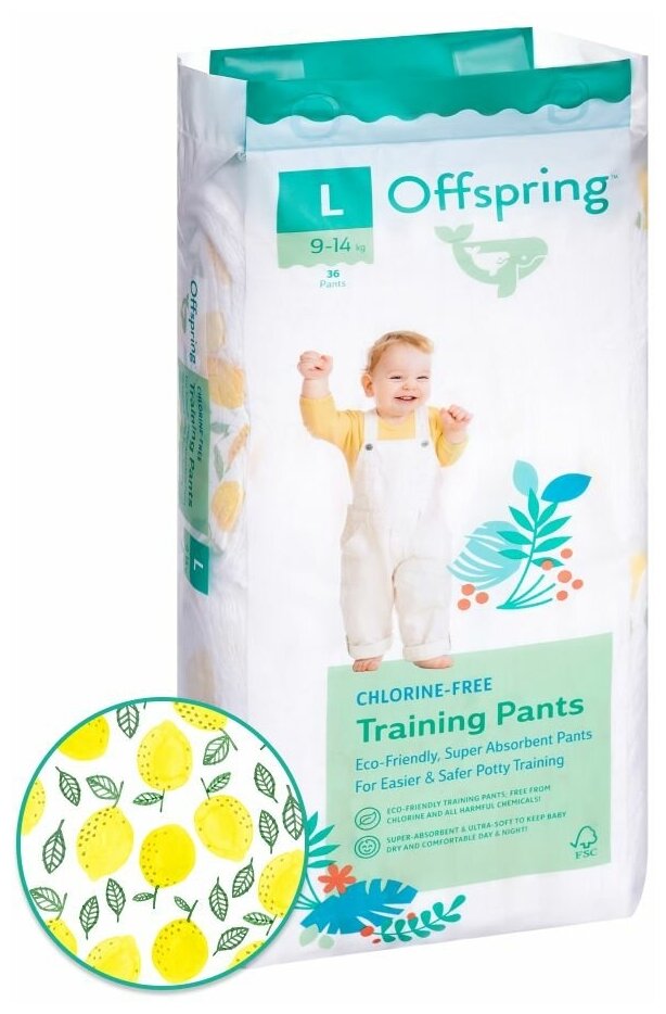 Трусики-подгузники Offspring расцветка Лимоны L (9-14 кг.), 36 шт.
