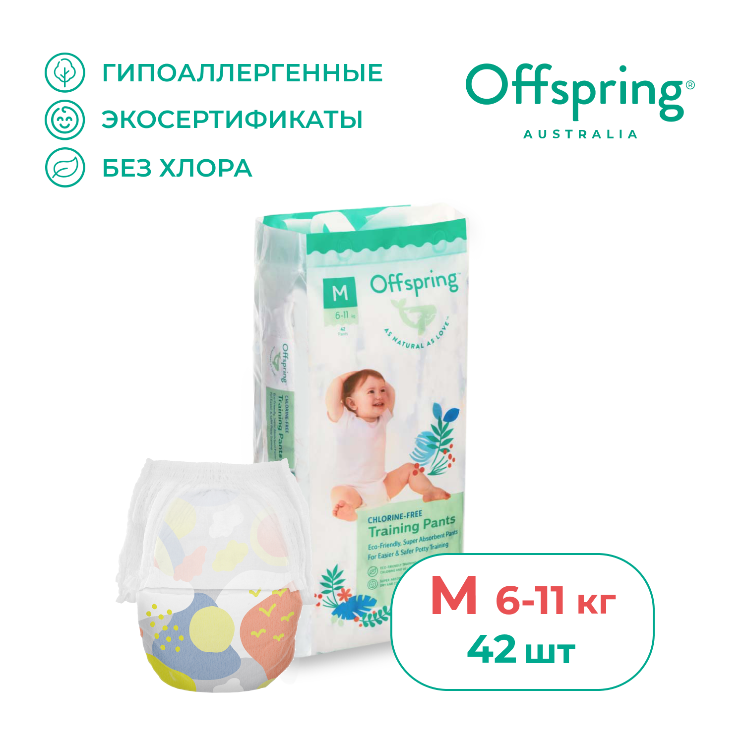 Трусики-подгузники Offspring, M 6-11 кг. 42 шт. расцветка Джунгли