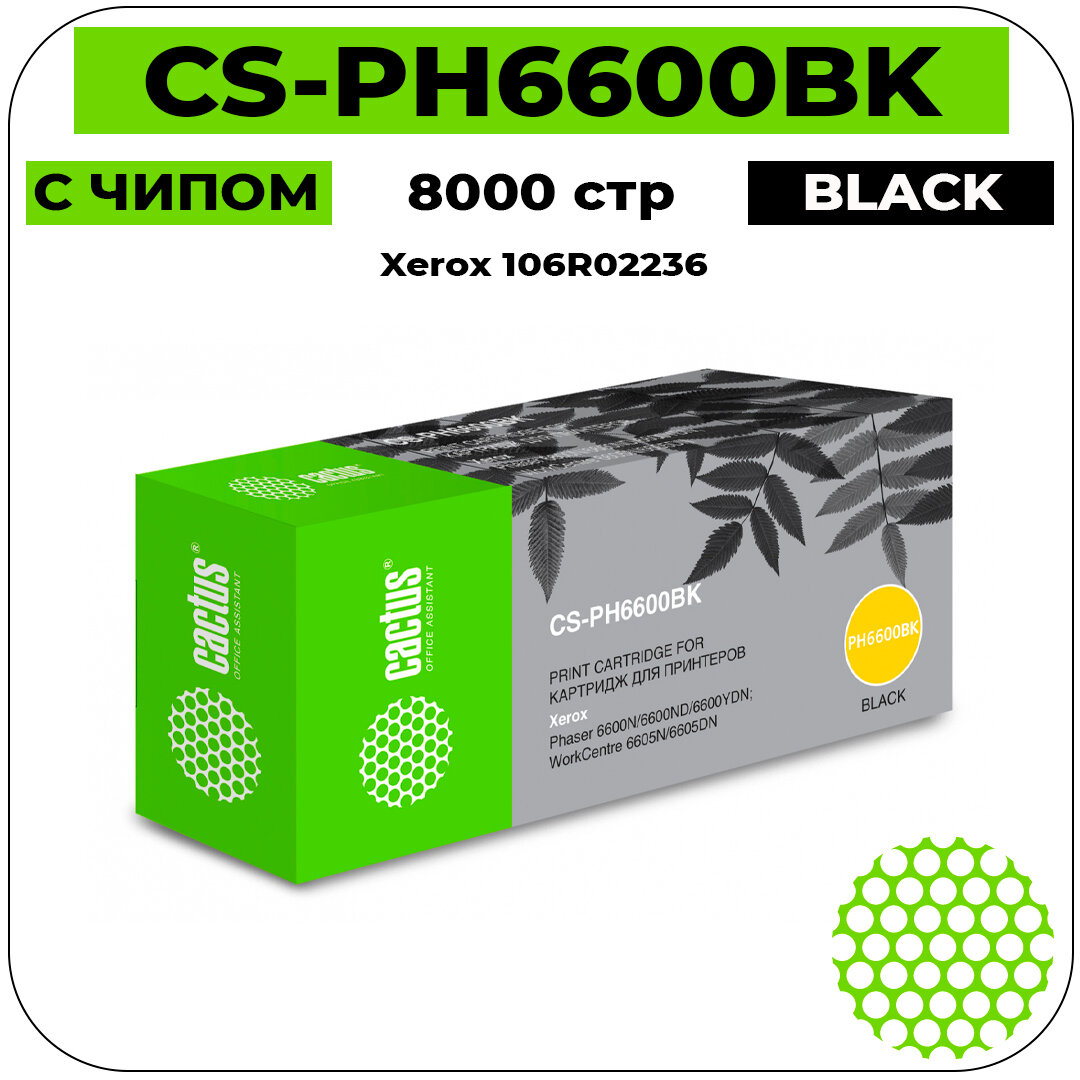 Cactus Картридж лазерный 106R02236 CS-PH6600BK черный бар.в компл. 8000стр. для Xerox Ph 6600 WC 6605