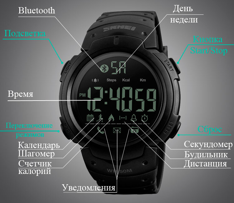 Часы с фитнес-трекером SKMEI 1301 - Черные интересное: