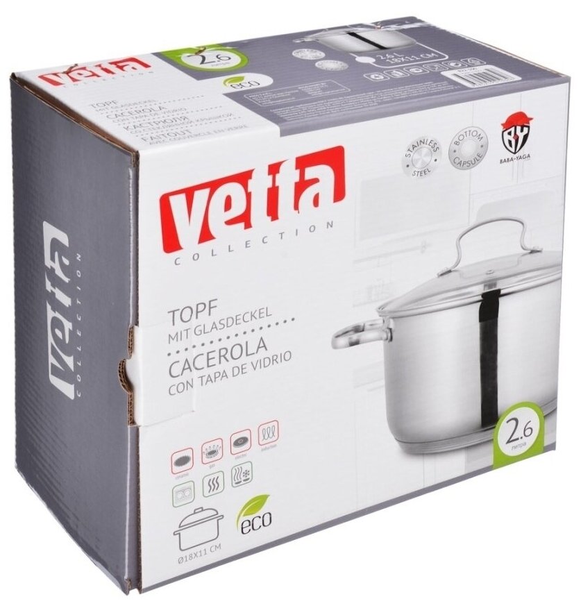 Купить Vetta Берн Кастрюля 18х11см. 2,6л. со стекл. крышкой, индукция 822-100