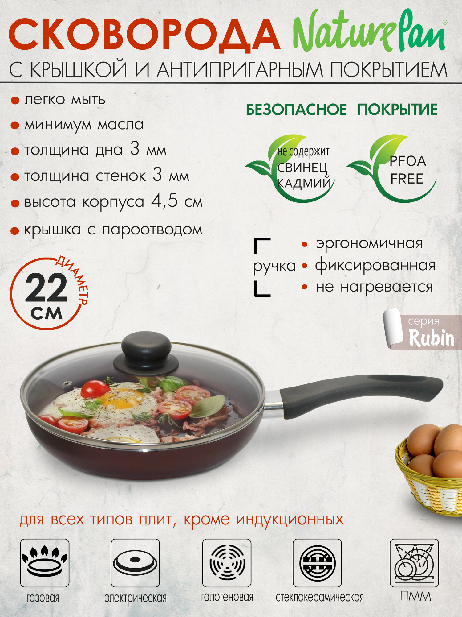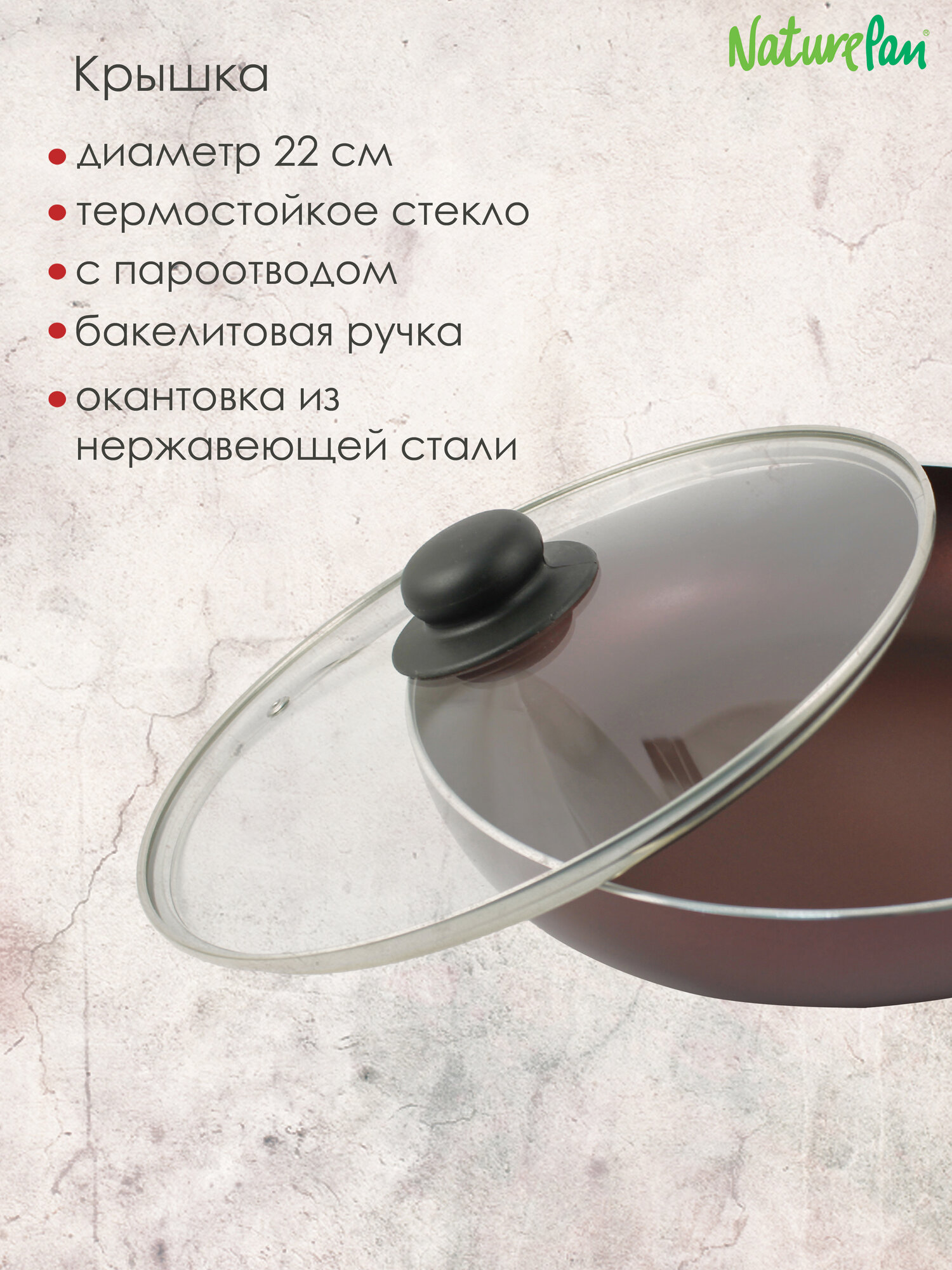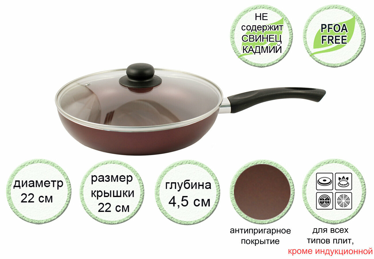 Сковорода с крышкой NaturePan Rubin 22см интересное: