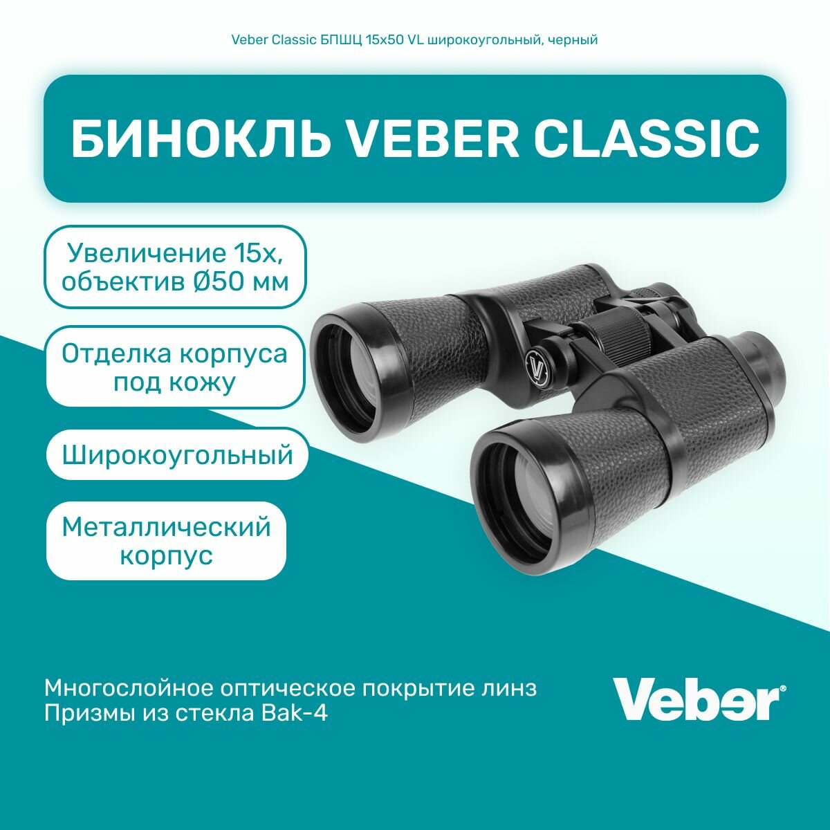 Veber бинокль classic бпшц 15x50 vl широкоугольный, черный