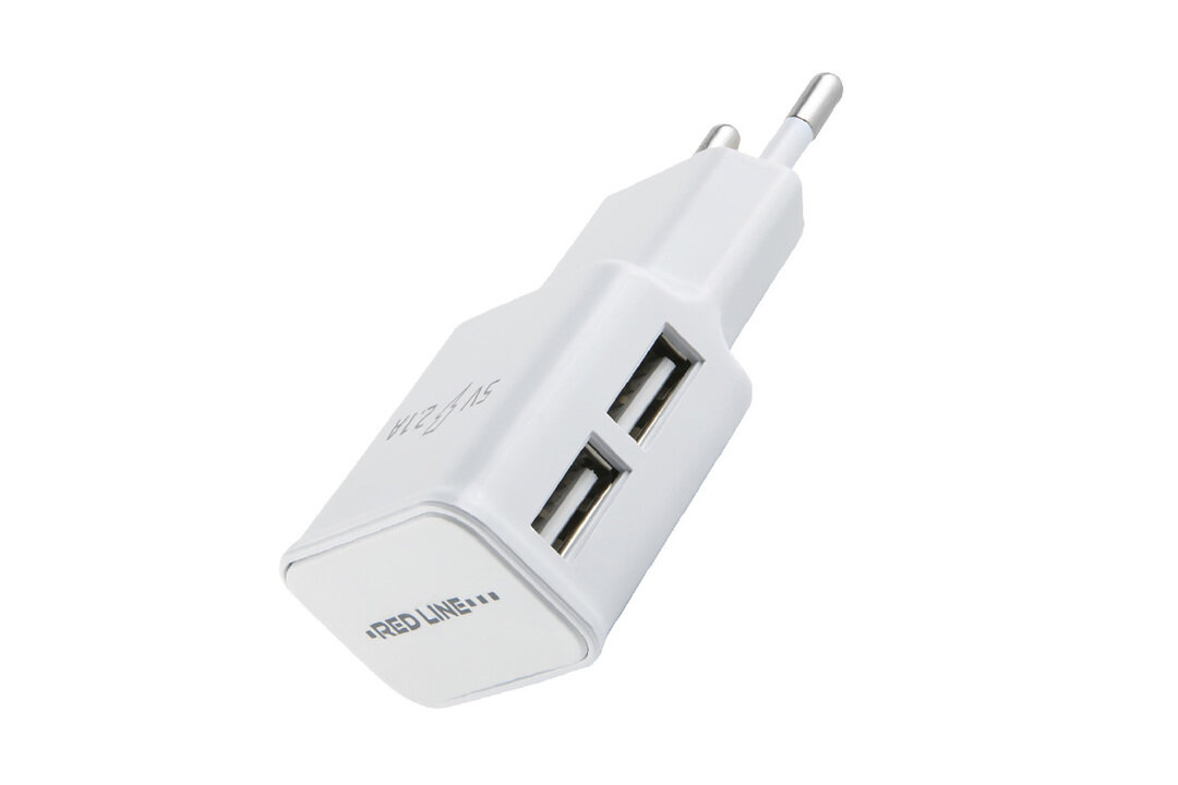 Зарядное устройство сетевое (220В) RED LINE NT-2A, 2 порта USB, выходной ток 2.1 А, белое