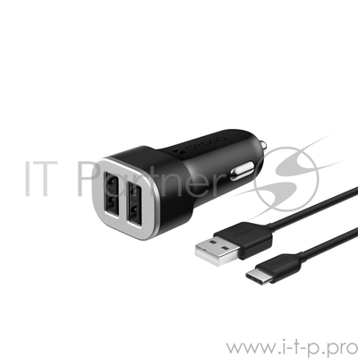 Автомобильное Зарядное Устройство Азу 2 Usb 2.4А + Кабель Usb Type-C, Черный, Deppa Deppa арт. 11284