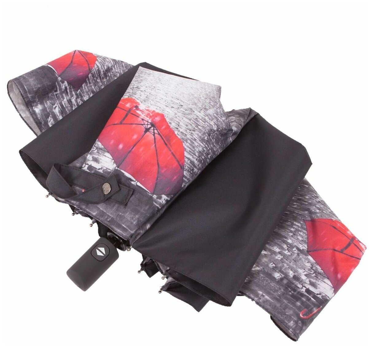 Зонт с большим куполом украшенным рисунком и серыми вставками Flioraj 170101 FJ