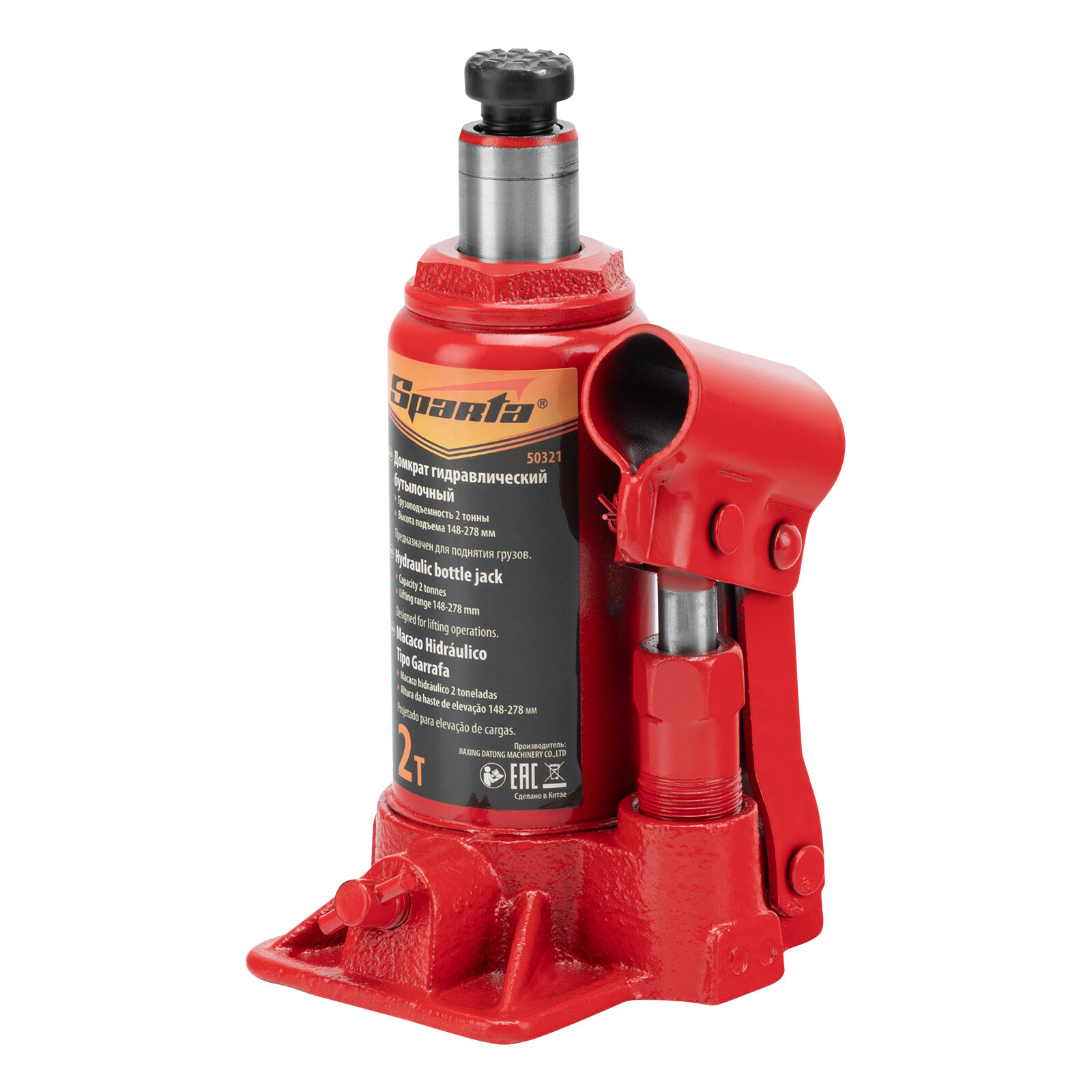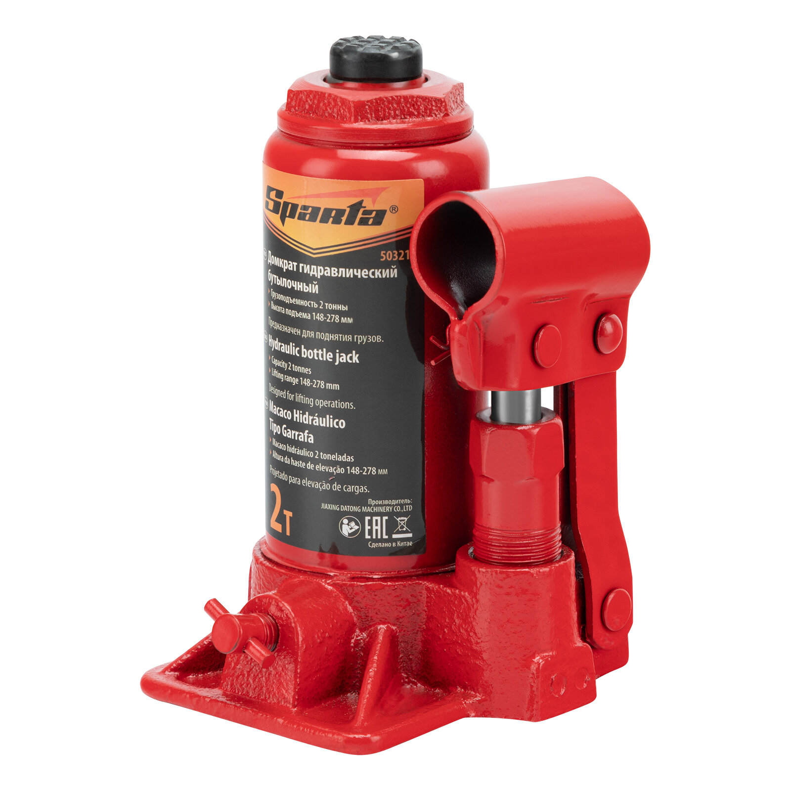 Домкрат гидравлический бутылочный, 2 т, h подъема 148-278 мм Sparta 50321