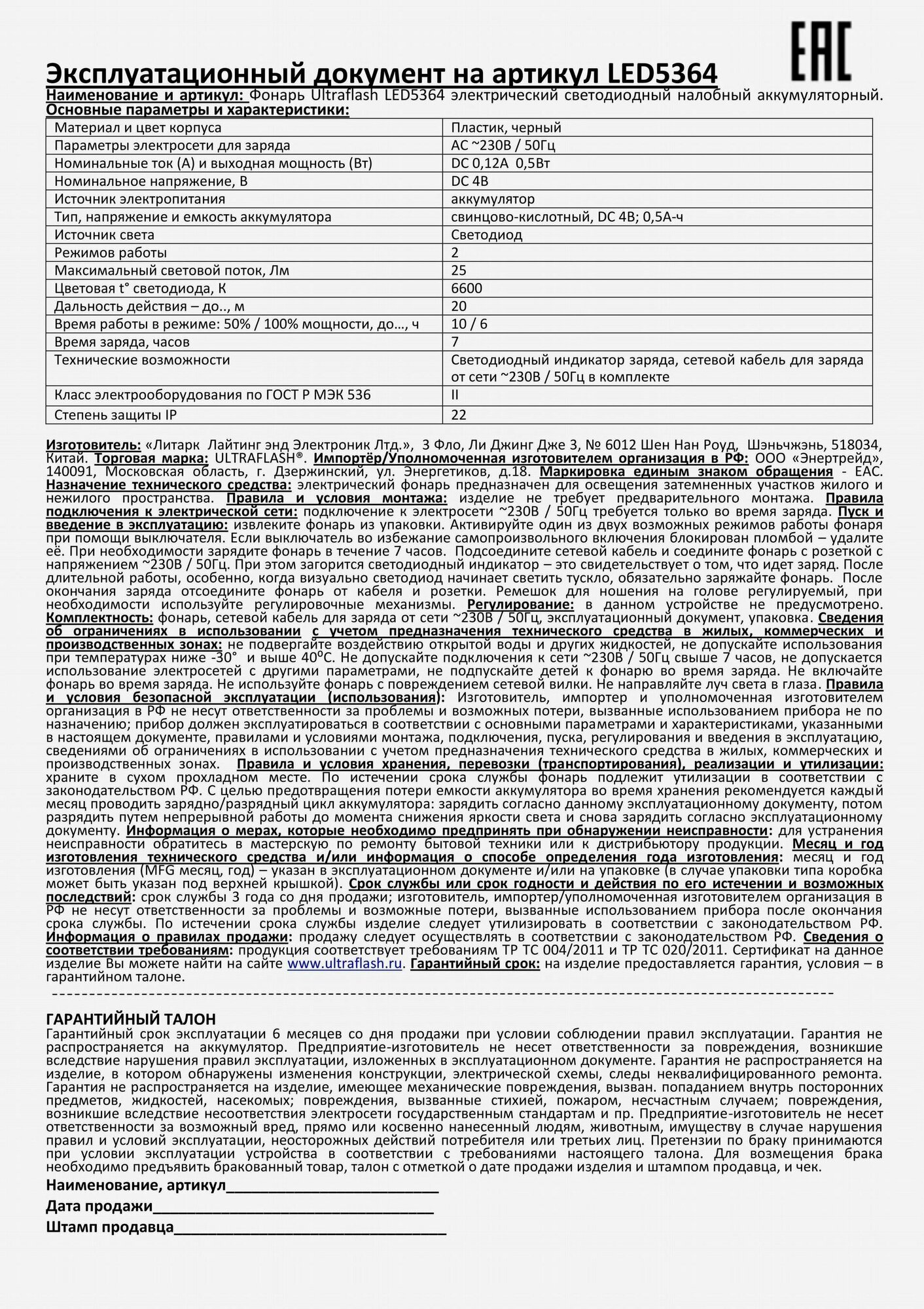 Фонарь Ultraflash LED5364 .