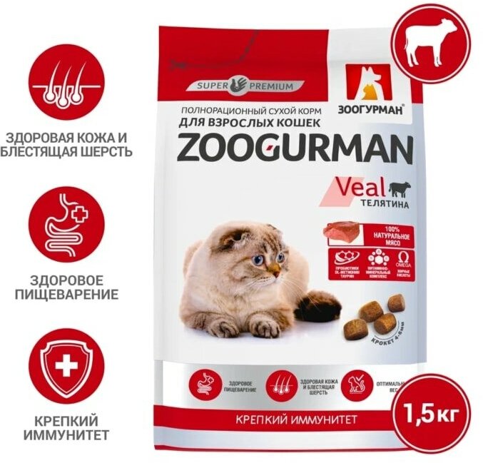 Сухой корм для кошек Зоогурман, Телятина 1,5 кг