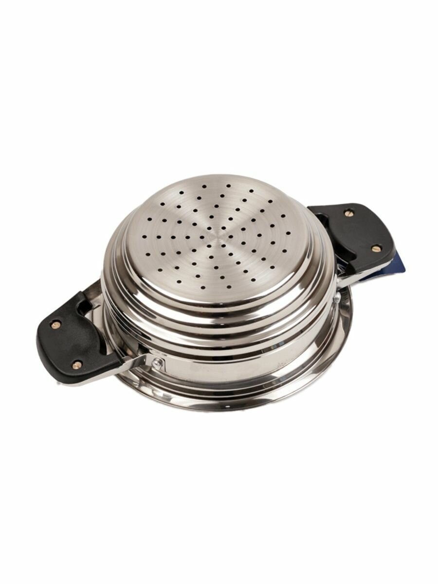 | Комплектация | ковш: 1.7 л; кастрюли: 1.7 л, 3.8 л, 6.8 л; сковорода: 24 см; пароварка; фритюрница; салатник: 20 см; 7 крышек; ручка-присоска для крышек; 3 бакелитовых подставки |