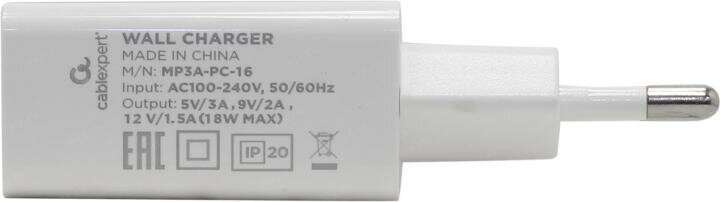 Cablexpert Адаптер питания, Qualcomm QC 3.0 , 100 220V - 1 USB порт 5 9 12V, белый MP3A-PC-16